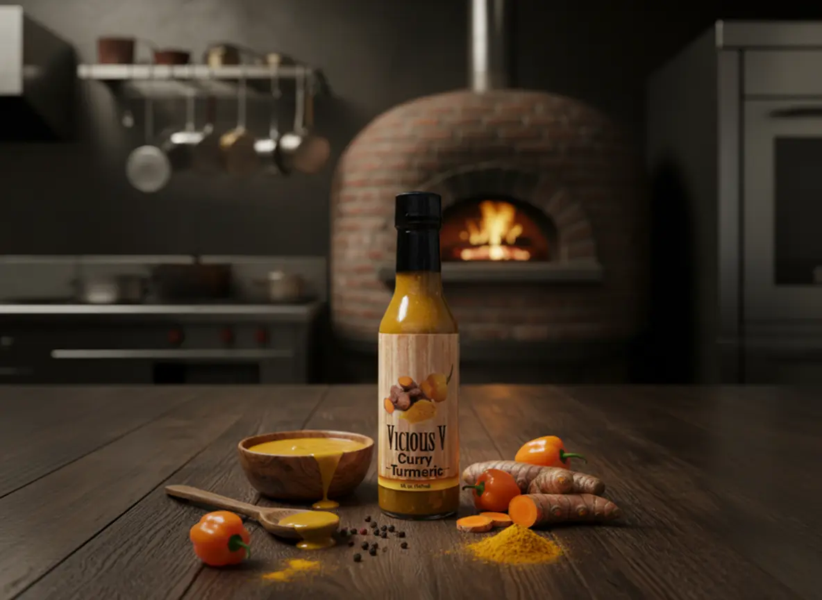 Experience a bold symphony of flavors with Vicious V, a handcrafted hot sauce that ignites the senses. Golden turmeric provides a warm, earthy base, perfectly complemented by a fragrant blend of curry spices that dance on the palate. With its unique flavor. Each drop delivers a fiery kick, balanced with subtle notes of garlic, and a touch of tangy acidity, making it irresistibly complex. Perfect for drizzling over grilled meats, roasted vegetables, or stirring into soups and marinades, Vicious V transforms any dish into a vibrant, flavor-packed adventure. Homemade, small-batch, and unapologetically spicy — this sauce is for those who crave heat with depth which makes it a top seller.